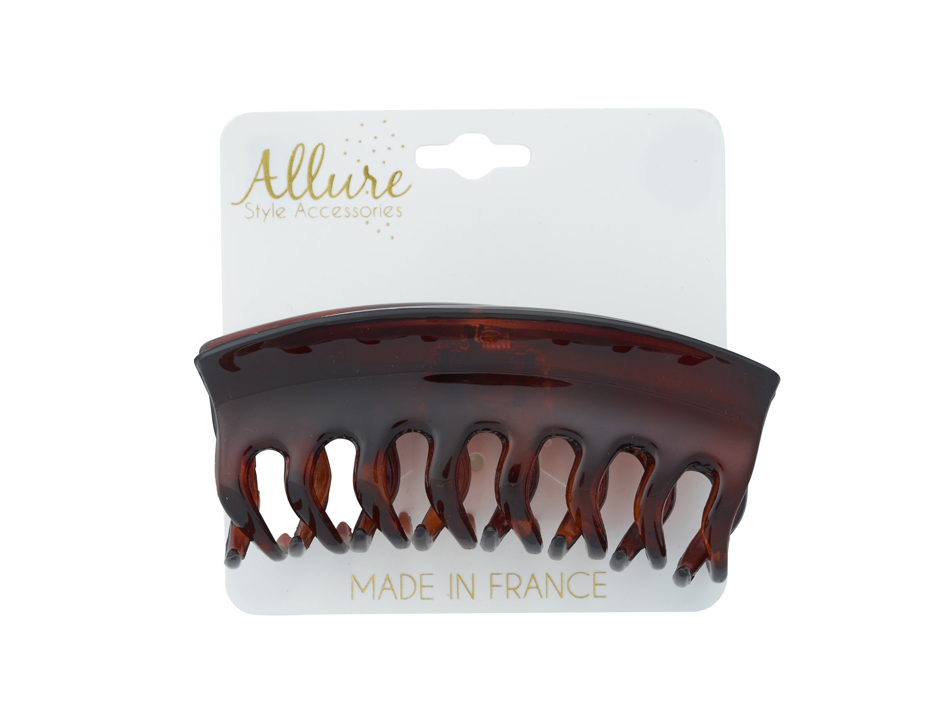 - Durable jaw clip with curved teeth keeps hair securely in place